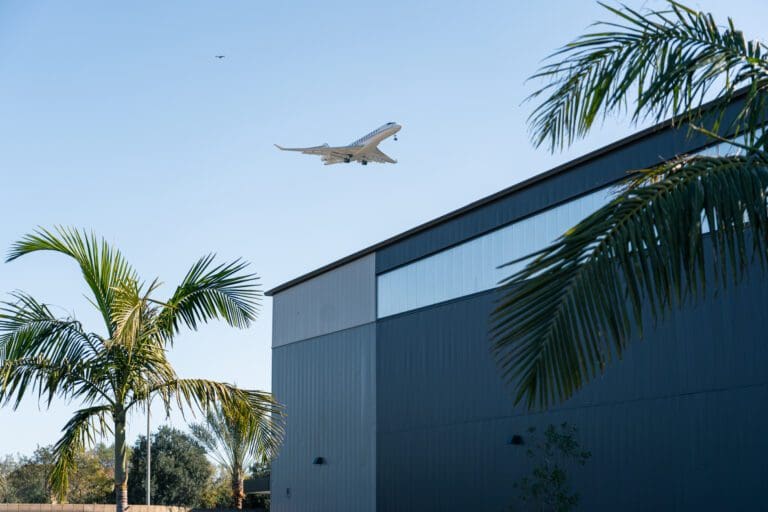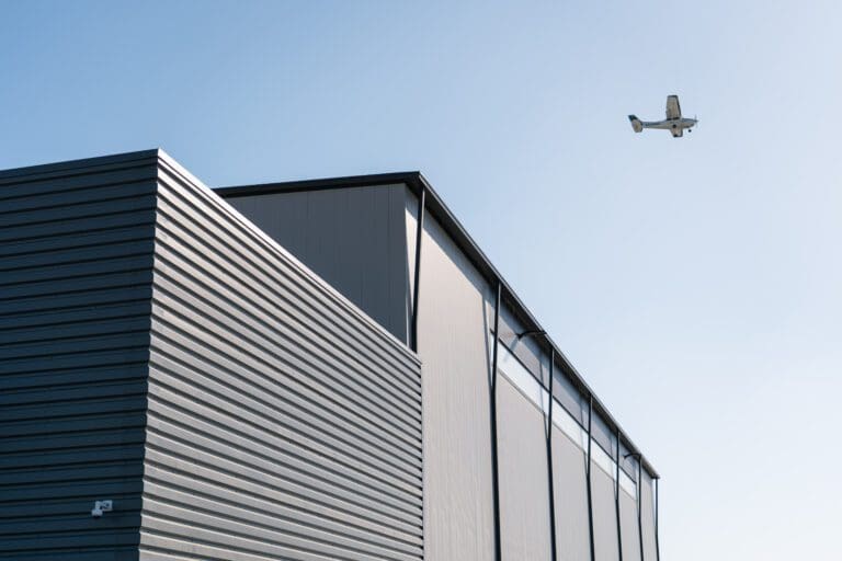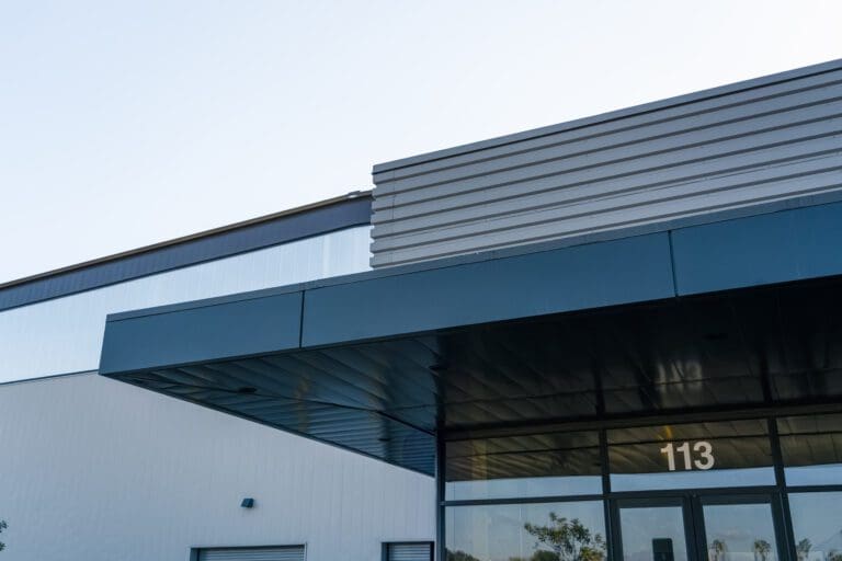 The CloudNine Airport, located in Camarillo California, is a commercial project that features multiple Taylor Metal panels. Our SmoothWall™ panel is featured in a Zinc Grey, Ash Grey and Musket on the walls of the building, as well as BR-36 (reverse rolled) in Zinc Grey, Glacier White and Musket.