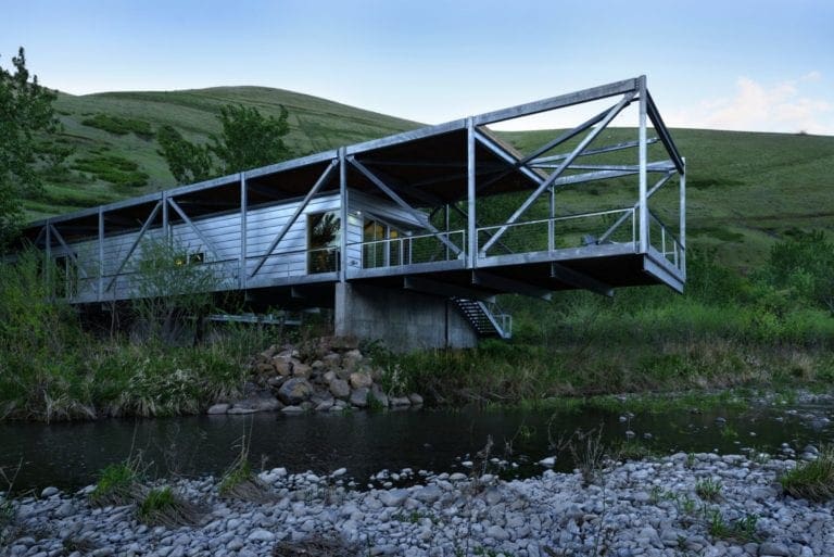 The Flood Plain House has Taylor Metal’s Easy-Lock™ Panel installed on its walls. The panel profile style features three accent ribs, the gauge is 24, width is 12″ and the finish is Zincalume® Plus. To preserve the hillside for vineyards the house is located on a flood plain of the Potlatch River.